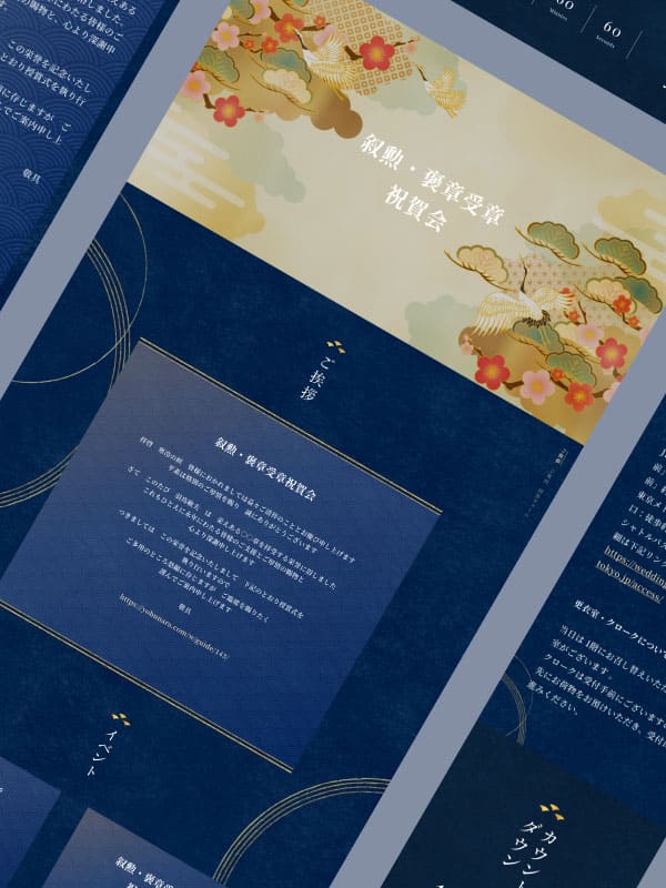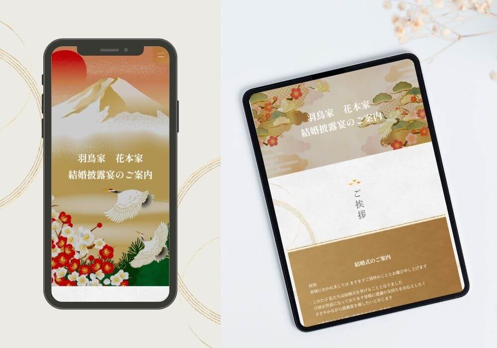 厳かな和の雰囲気を持つデザインテンプレートに、伝統的な和の画像を組み合わせることで、より格式のある印象に。神前式や和のテイストを取り入れた結婚式にもよくなじみます。