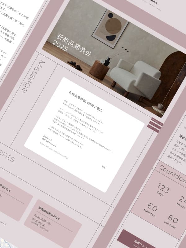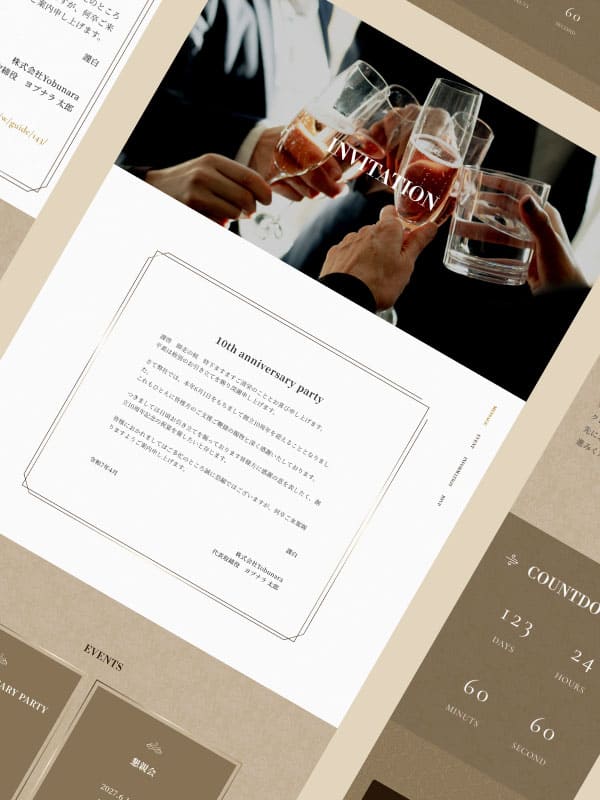 ここからは、WEB招待状ヨブナラのテンプレートを使用し、「写真なし」で仕上げた招待状の実例をご紹介します。