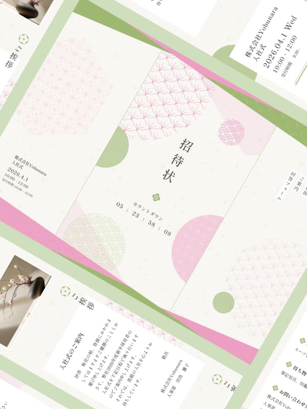 次に、ヨブナラで利用できる無料画像素材「ヨブナラフォト」を使用した招待状をご紹介します。