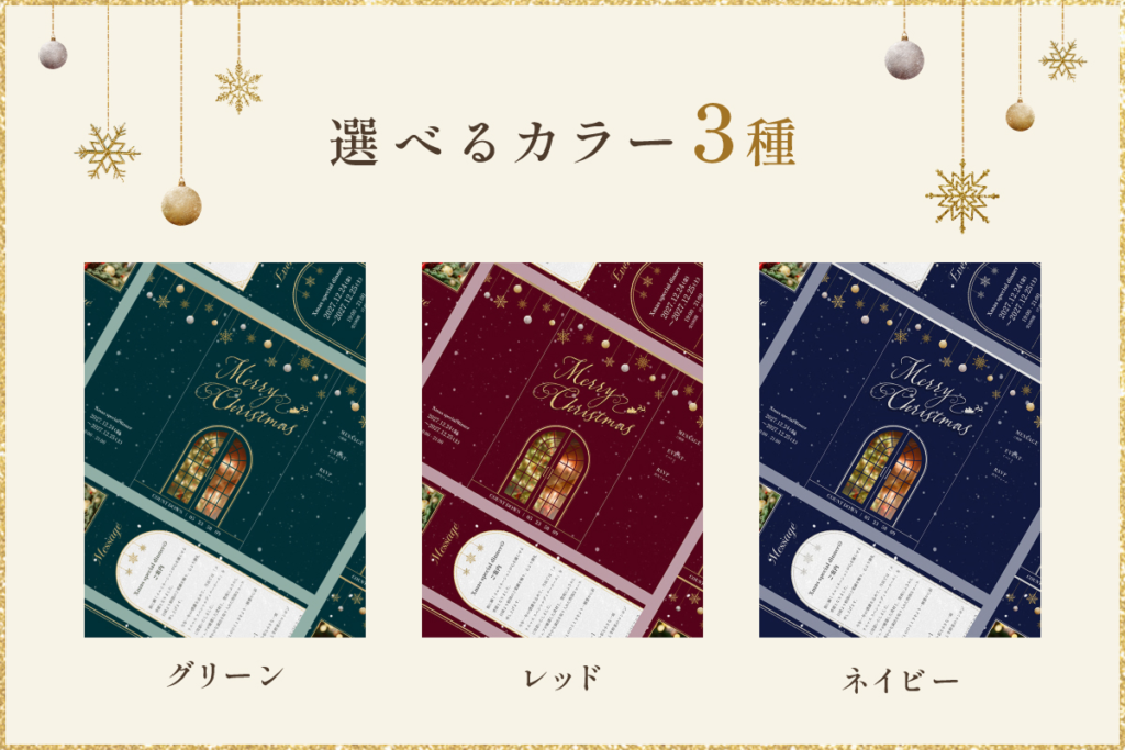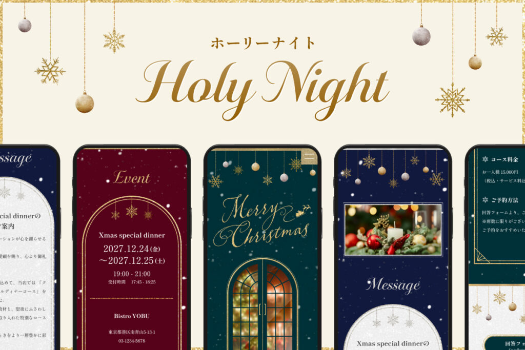 WEB招待状ヨブナラでは、2025年10月8日にヨブナラ史上初となるクリスマスデザインテンプレート「ホーリーナイト」を1種類3カラーバリエーションでリリースしました。