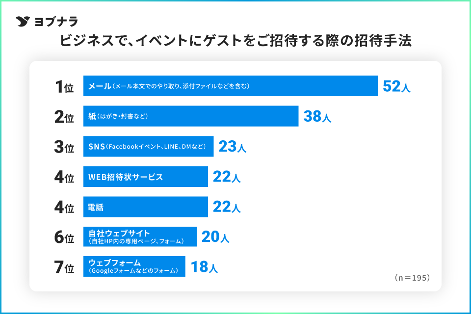 調査結果から、イベント招待業務においては、メールを中心とした従来型手法が依然として主流であることが見えてきます。