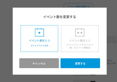 ②イベント数の切り替え画面が表示されるので、設定したいイベント数を選択し、[変更する]をクリック。