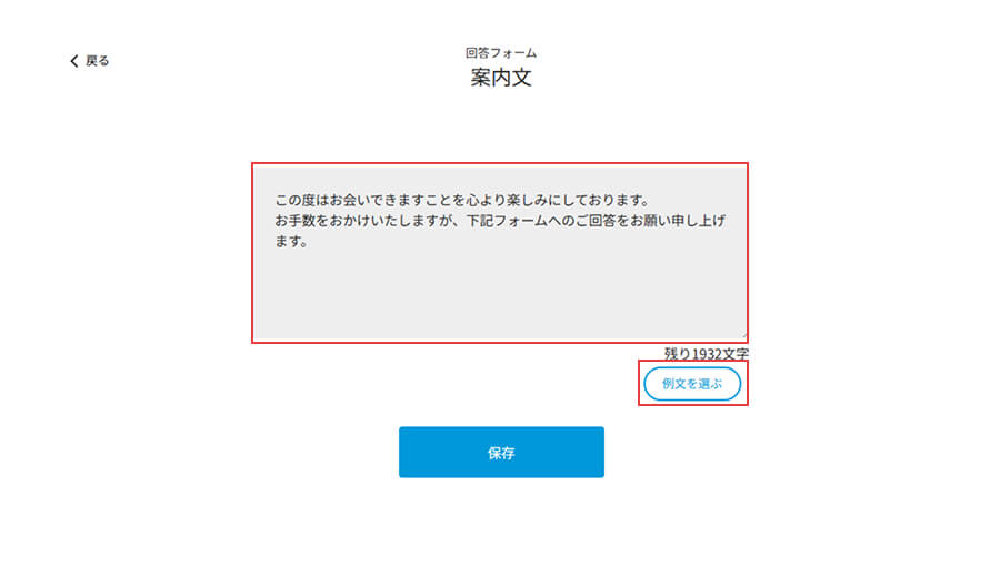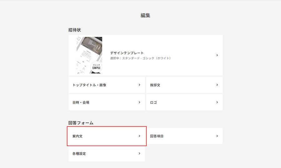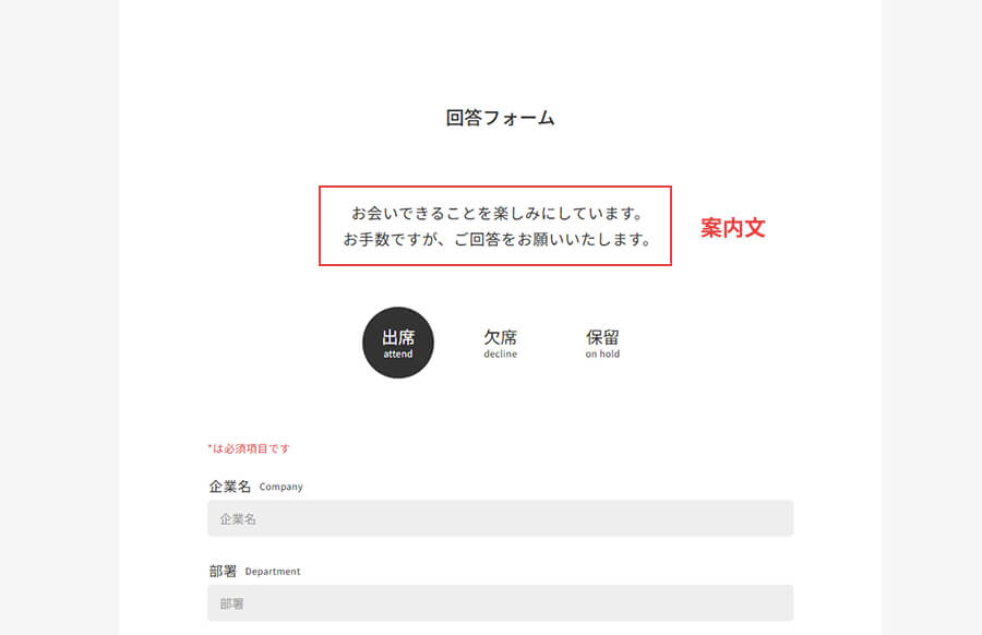「案内文」とは、出欠回答フォームの上部に表示されるテキストです。