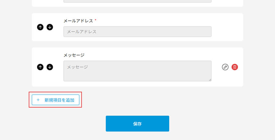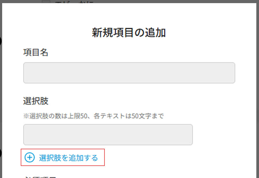 回答項目編集画面下部にある[新規項目を追加]をクリックします。